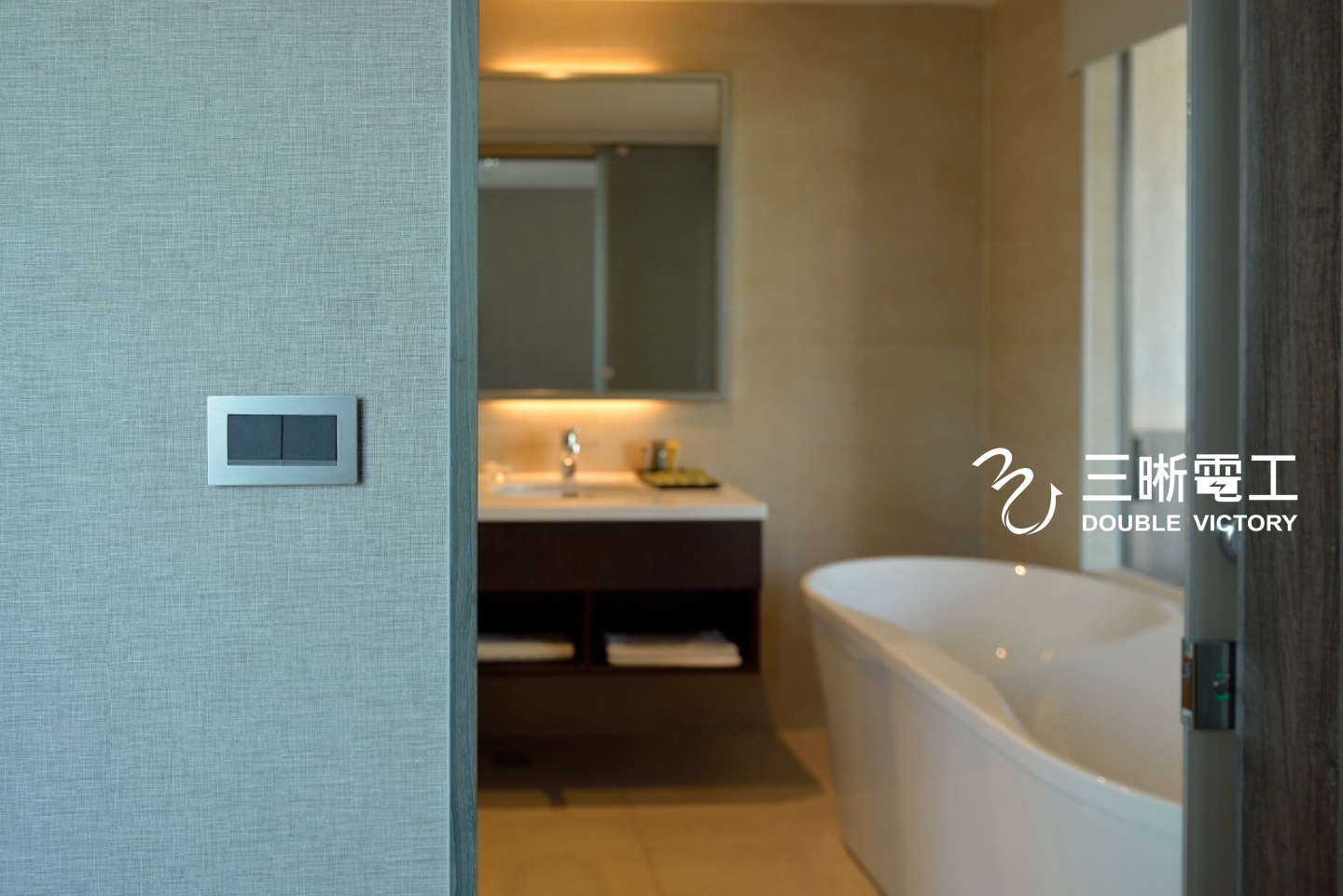 高雄愛河智選假日酒店 以時尚簡約的設計語彙,打造沉穩而雅緻的城市旅宿空間。從結合商務、休閒、會議與餐飲機能的多元配置,到每間客房內的靜謐氛圍,皆展現對旅人需求的細緻觀察與回應。為了更貼近都會旅人的美學品味,空間選用三晰電工「 月光系列 」開關插座,以摩登灰與摩登銀蓋板呼應整體空間的現代質感,在細節中悄然提升整體層次。